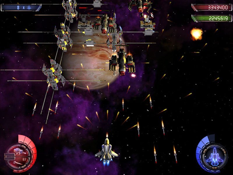 Gra została podzielona na 5 różnych światów, z których każdy składa się z 10 poziomów (w sumie 50), a im dalszy poziom, tym bardziej niebezpieczni i zabójczy są wrogowie. Dobrą wiadomością jest to, że dostajesz pieniądze za każdy zniszczony wrogi statek. Możesz za nie zmienić swój dość przeciętny statek kosmiczny w prawdziwą gwiezdną fortecę – dokupić ulepszenia do broni oraz wymienić stare systemy broni na nowe, a także ulepszyć pancerz i baterie (co okaże się niezbędne, gdyż każdy strzał lasera lub wystrzelony pocisk plazmy zużywa całkiem sporo energii). I z pewnością dobrym pomysłem będzie gromadzenie rakiet i bomb, które służą jako broń rezerwowa, gdy sytuacja staje się napięta.