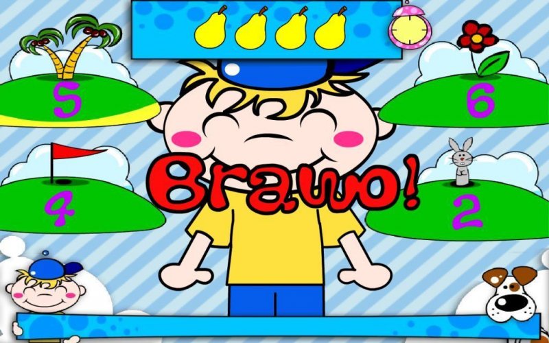 Na ekranie pojawia się grupa przedmiotów, dziecko ma za zadnia je policzyć oraz wskazać na ekranie ich liczbę. - Parzyste <> Nieparzyste: