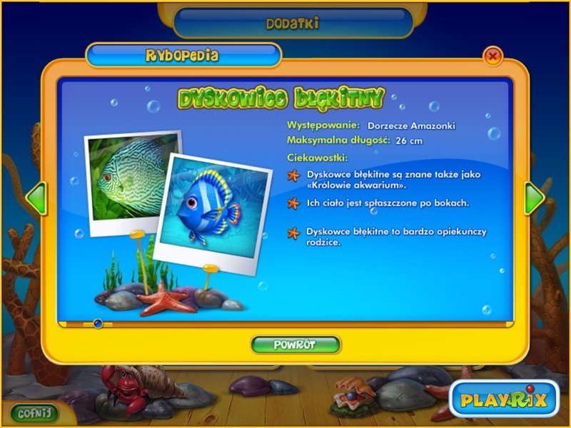 Jeśli dodamy do tego Rybopedię zawierającą mnóstwo zabawnych ciekawostek na temat wszystkich morskich stworzeń z gry, cudowne tapety, relaksującą ścieżkę dźwiękową i bonusowy wygaszacz ekranu – będziesz bawić się wyśmienicie!