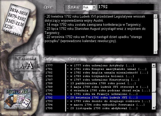 TEORIA: To chronologicznie uporządkowana baza danych wydarzeń historycznych wraz z ich opisami, 150 ilustracji, 20 map oraz 29 charakterystyki królów polskich. Program umożliwia wydruk wybranych materiałów. To sprawia, że jest on doskonałym kompendium wiedzy historycznej.