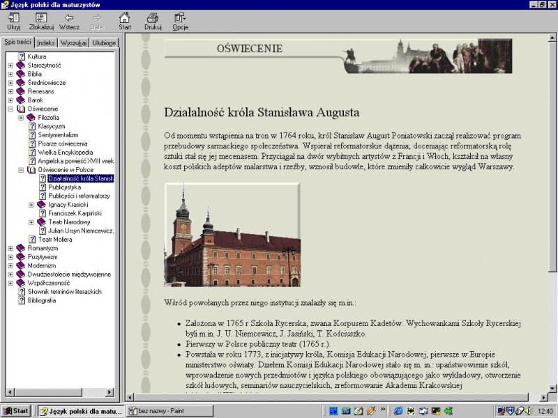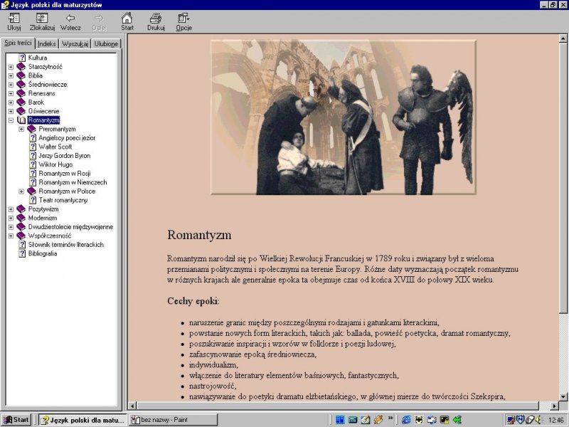 - Omówienie wszystkich epok literackich, z możliwością szybkiego poruszania się między nimi;