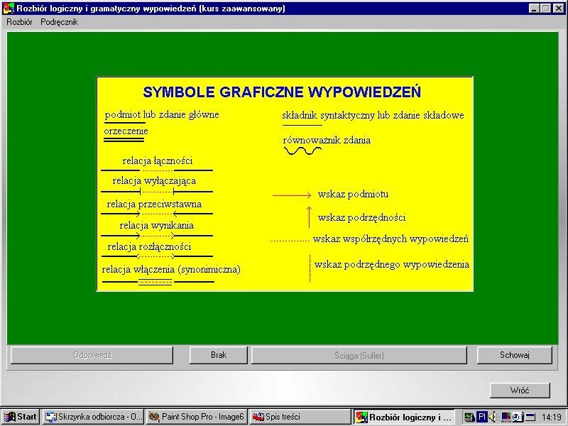 - Ćwiczenia z zakresu rozbioru gramatycznego i logicznego zdań (kurs zaawansowany);