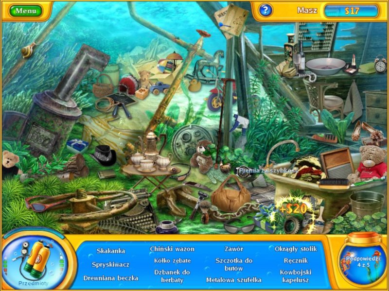 Zanurz się w magicznym, podwodnym świecie i zbadaj go w poszukiwaniu drogocennych, ukrytych przedmiotów. Sprzedając je zdobędziesz pieniądze na swoje piękne akwarium. Kupuj różne akcesoria: rośliny, muszle, korale, figurki, budowle oraz urządzenia: pompki, oświetlenie i filtry. Możesz także nabyć nowe gatunki ryb, na przykład iglicznie czy błazenki i umieścić je w akwarium.
