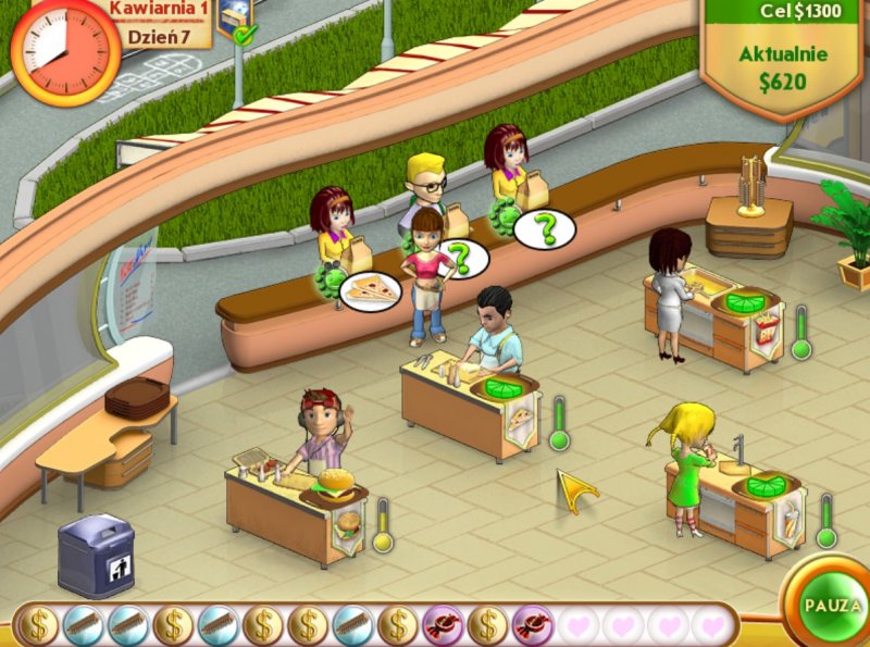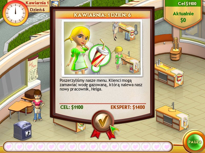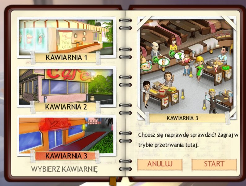 W natłoku obowiązków znajdź czas na rozegranie mini gry, w której zdobędziesz wiele przydatnych bonusów. Dodatkowym ułatwieniem w grze będą liczne ulepszenia kawiarni, takie jak: nowe podłogi, kasy i wyposażenie, które kupisz za zarobione pieniądze. Wszystko to pomoże Ci sprostać wielu czekającym na Ciebie zadaniom.
