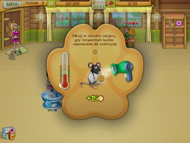 Aby przedsięwzięcie odniosło sukces, Twoim zadaniem będzie świadczenie klientom jak najlepszych usług. Czasu na zaczerpnięcie oddechu będzie niewiele, ponieważ wypełnią go liczne obowiązki: mycie i czesanie zwierzaków, serwisowanie sprzętu, sprzedaż produktów, ulepszanie salonu, zakup reklamy i utrzymanie zainteresowania klientów.