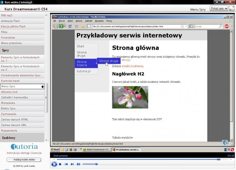 55. Menu Spry – Tworzenie nawigacji dla serwisu za pomocą dynamicznego menu. (04:31 min)