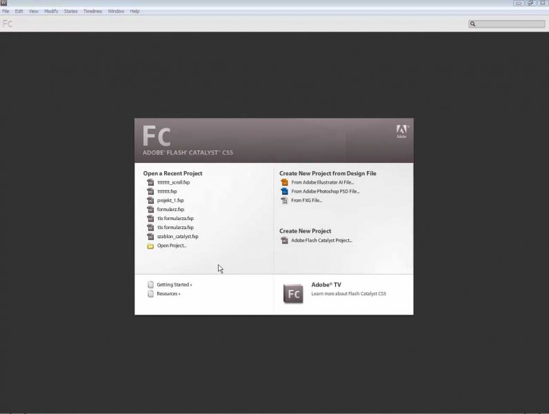 Adobe Flash Catalyst to program, który pozwala tworzyć interaktywne projekty bez konieczności pisania kodu Action Script. Intuicyjna obsługa sprawia, że jest to doskonałe narzędzie dla początkujących użytkowników. Catalyst umożliwia stworzenie atrakcyjnej i efektownej strony internetowej w rekordowo krótkim czasie. Również doświadczeni projektanci docenią oszczędność czasu i wygodę oferowaną przez Flash Catalyst.