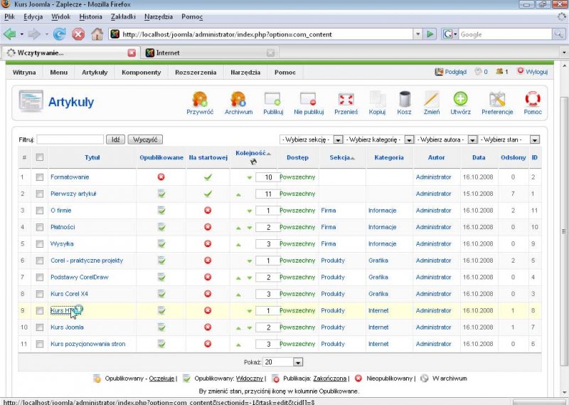 20. Artykuły: lista – Jak łatwo się domyśleć będziemy teraz prezentowali artykuły na drugi sposób czyli jako listę. Warto poznać wady i zalety takiego rozwiązania. (03:55)