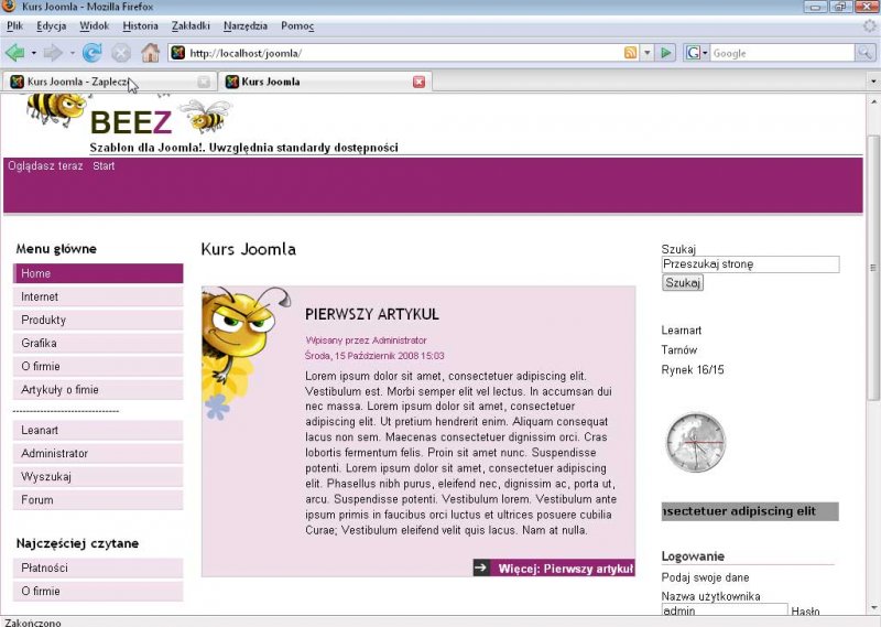 44. Komponent reklamy – Ten ciekawy komponent umożliwia wyświetlanie reklam na stronie. Reklamy mogą mieć formę grafiki lub tekstu. (04:41)