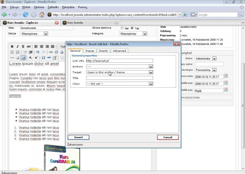 15. Wstawianie zdjęć i odnośników – Artykuły w systemie Joomla nie muszą się składać wyłącznie z tekstu. Możesz w nich umieścić np. jakieś obrazki czy multimedia. Możesz też dodać odnośniki do innych stron. (04:19)