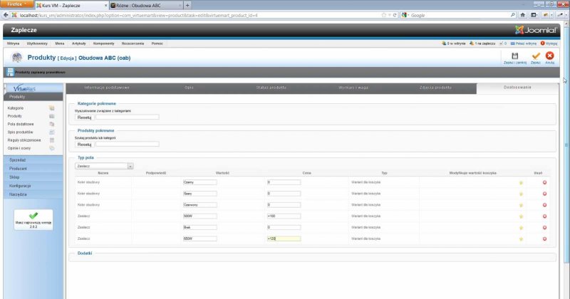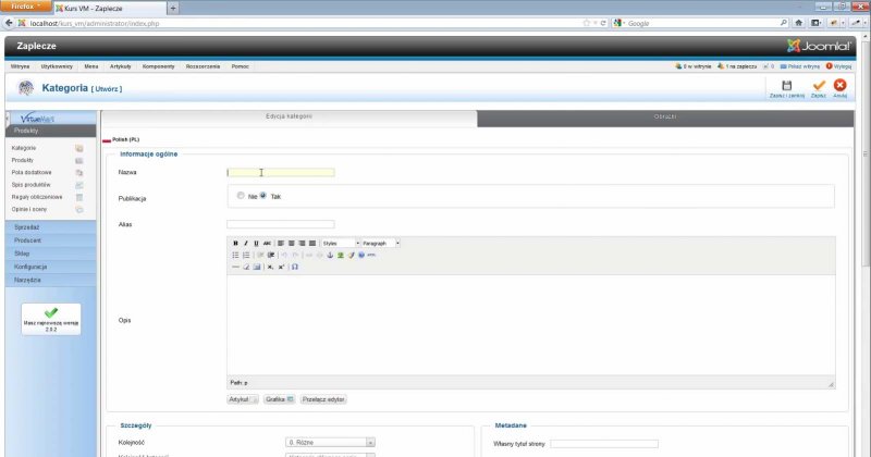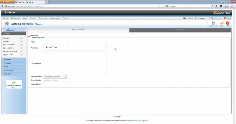 - W kursie pracujemy w oparciu o polską wersję językową komponentu VirtueMart 2.