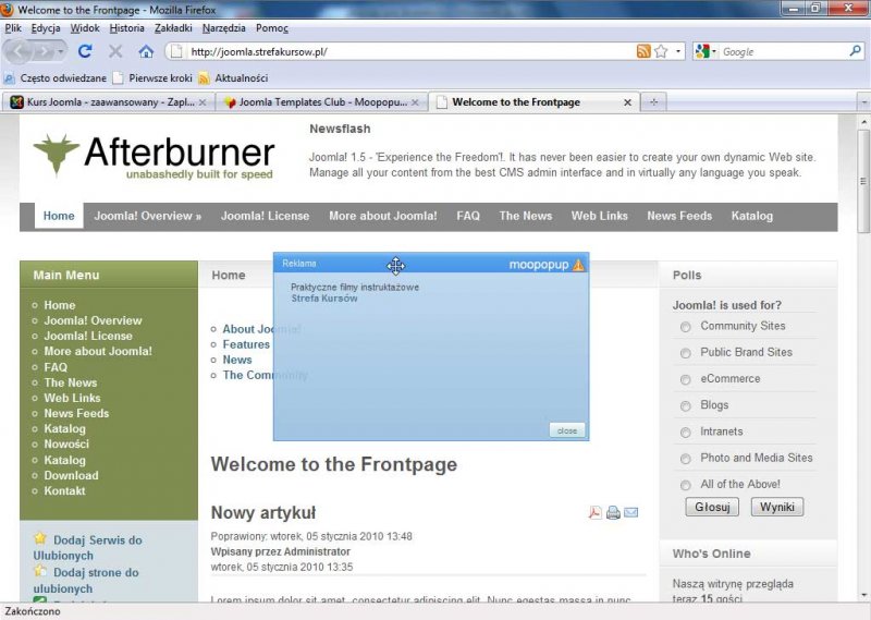 W następnych rozdziałach zajmiemy się tematami z różnych dziedzin. Dowiesz się np. jak szybko i wygodnie stworzyć galerię zdjęć w treści artykułu. Dowiesz się także jak udostępniać pliki do ściągnięcia zarówno w osobnym komponencie jak i w postaci załączników do artykułu. Omówimy również wysyłanie newslettera do użytkowników strony. Kolejne tematy to księga gości oraz udostępnianie rozbudowanego formularza kontaktowego. Pokażemy też jak stworzyć witrynę wielojęzyczną.