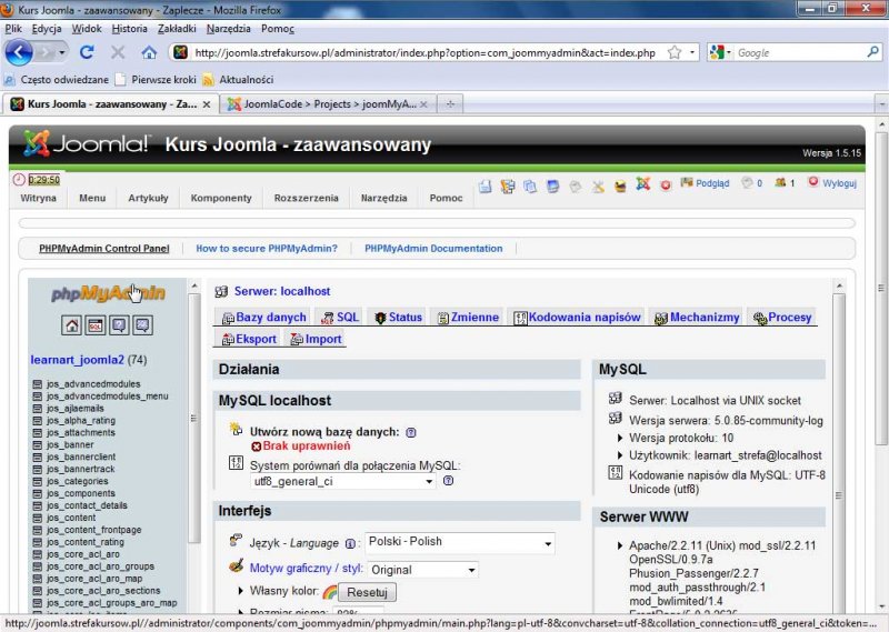 Następne rozdziały dotyczą bezpieczeństwa bazy danych. Omówimy tworzenie kopii zapasowej, która pozwoli na szybkie przywrócenie zawartości Twojej strony. Zainstalujemy także dodatek, który zapewni Ci dostęp do PHPMyAdmin. Dzięki temu będziesz mógł wygodnie zarządzać bazą danych bez konieczności opuszczania panelu administracyjnego.