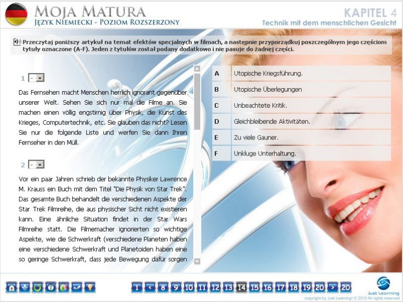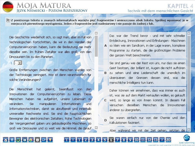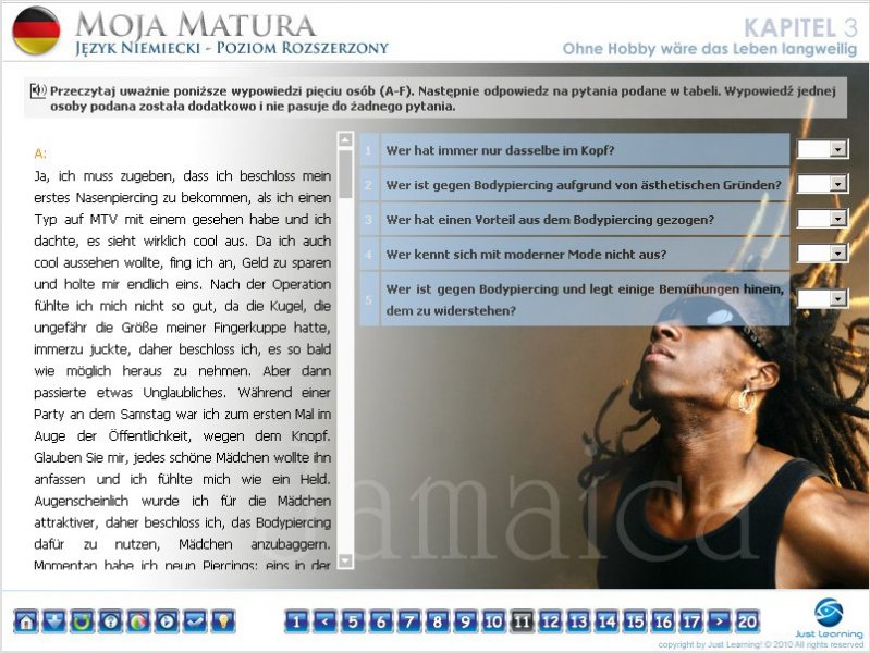 Program Moja Matura 2010 – języka niemiecki poziom rozszerzony sprawi, że szybko i skutecznie przygotujesz się do egzaminu maturalnego z języka obcego na poziomie rozszerzonym!