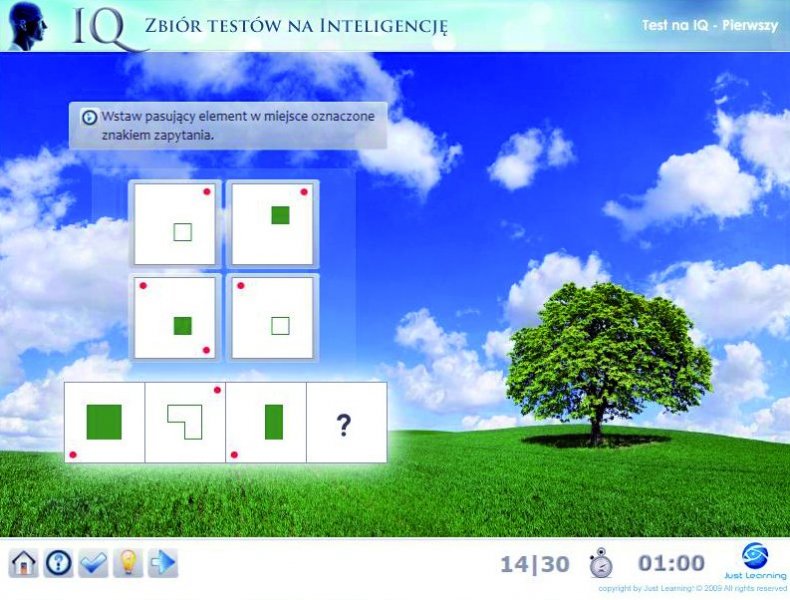 Z każdym kolejnym testem i pytaniem z pewnością zauważysz, że te typy ćwiczeń, które jeszcze na początku pracy z programem wydawały się niemożliwe do rozwiązania, stają się dla Ciebie coraz łatwiejsze, a występujące w ćwiczeniach zależności są coraz bardziej oczywiste. To właśnie będzie efekt ćwiczeń intelektu i najistotniejszy wskaźnik skuteczności działania programu.