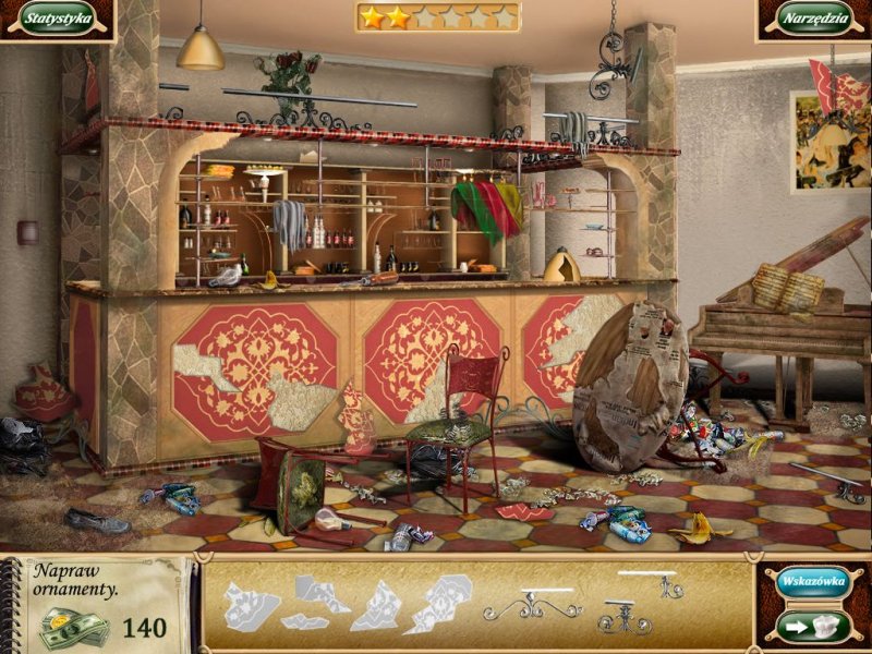 Posprzątaj zagracone pomieszczenia, napraw zepsuty bar i wyposaż swoje restauracje w najwspanialsze dostępne na rynku meble, aby na wielkim otwarciu wszyscy oniemieli z zachwytu. Znajdź składniki na smakowite dania zamówione przez klientów i przygotuj ucztę godną samego króla! Pomiędzy poziomami delektuj się wspaniałymi daniami przyrządzonymi z ukrytych obiektów, które Cię zaintrygują. Odkryj również dziwne historie, które mają miejsce w pobliżu twoich barów!