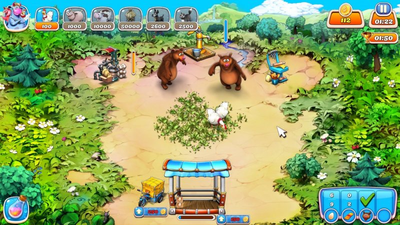 Kiedy zacznie robić się trudniej, zawsze możesz skorzystać z ulepszeń, żeby szybciej osiągnąć cel. Możesz również odpocząć na chwilę od ciężkiej harówki na farmie i zagrać w ruletkę! Pamiętaj tylko, żeby uważnie rozglądać się w poszukiwaniu zabawnych naklejek do zebrania. Krowa, niedźwiedź i świnia na pewno dostarczą ci niezwykłej rozrywki! Dziesiątki ciekawych poziomów, żywa grafika i animacja oraz cała gama bonusów sprawią, że gra "Odlotowa Farma: Huragany" rzuci cię na kolana!
