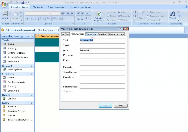 Makra – Tym razem omówimy makra. Zaczniemy od najprostszego przykładu. Następnie pokażemy Ci jak stworzyć makro które ułatwi wprowadzanie danych do tabeli lub formularza. Będziemy również tworzyli makro, które sprawdza poprawność wprowadzonych danych. Przekonasz się, że Makrą mogą znacznie przyśpieszyć i ułatwić pracę z bazą danych.