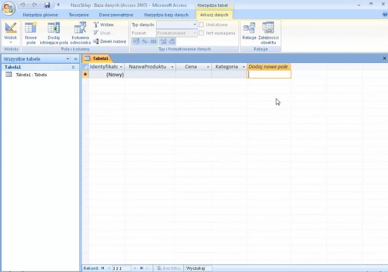 Tabele – Tabele to podstawowy element każdej bazy. Na początku dowiesz się jak stworzyć pola w tabeli oraz jak zmieniać ich właściwości. Następnie będziemy dodawali do niej przykładowe dane. Pokażemy Ci jak stosować różne typy danych oraz jak wyszukiwać informacje. Poznasz również sposoby sortowania i filtrowania rekordów. Dowiesz się też jak ułatwić sobie wprowadzanie danych do tabeli.