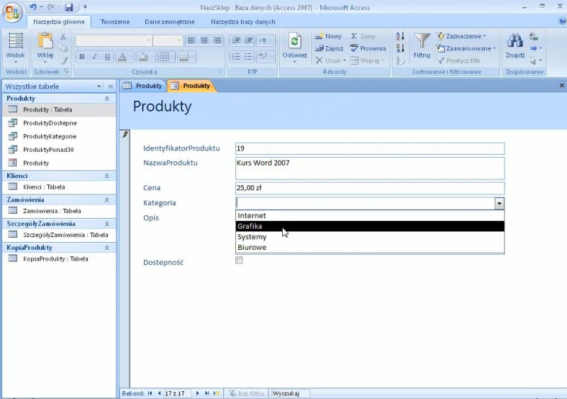 Interfejs i nawigacja – Na początku omówimy interfejs programu. Poznasz nowe elementy, które pojawiły się w wersji 2007. Dowiesz się jak utworzyć nową bazę danych od podstaw. Dowiesz się również jak korzystać z baz utworzonych w wersjach wcześniejszych.