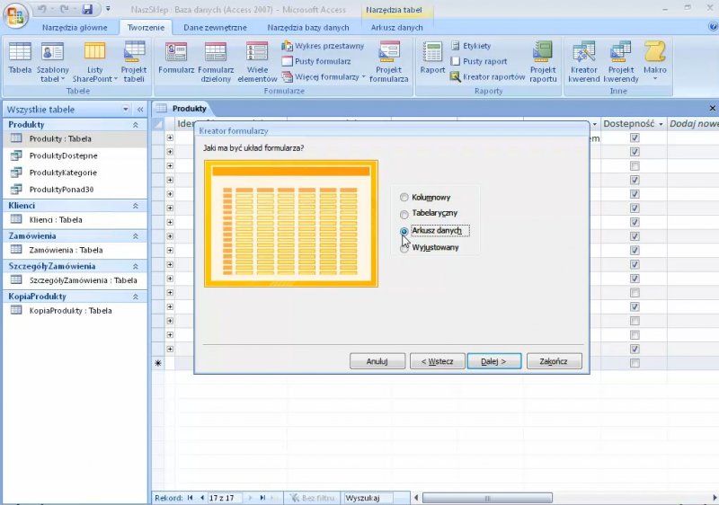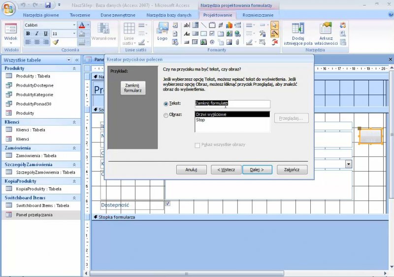 Formularze – Formularze to bardzo przydatny element, który ułatwi Ci przeglądanie i wprowadzanie danych. Zaczniemy od stworzenia prostego formularza a potem przejdziemy do bardziej złożonych projektów. Dowiesz się między innymi jak zmienić właściwości o raz wygląd formularza. Pokażemy Ci także jak stworzyć tzw. panel przełączania, który ułatwi nawigację w bazie danych.