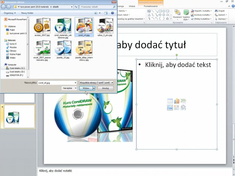 - Wstawianie do prezentacji klipów wideo oraz audio.