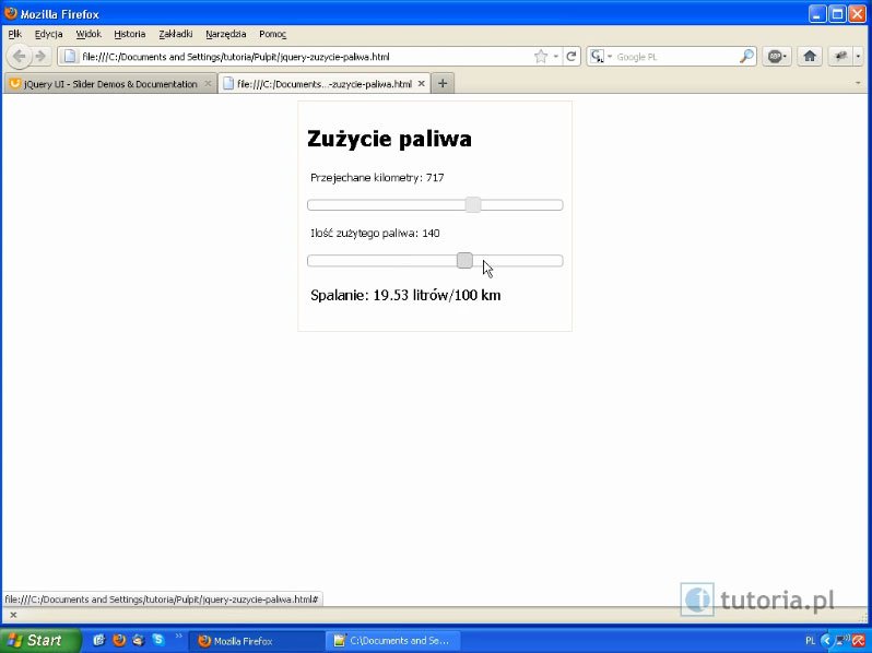 27. Prosta aplikacja w jQuery – Tworzenie prostej aplikacji obliczającej zużycie paliwa za pomocą jQuery i jQuery UI. (10:59 min)