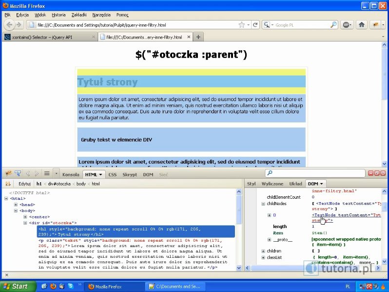 03. Jak działa jQuery – Generalne zasady korzystania z selektorów i metod jQuery. (03:44 min)