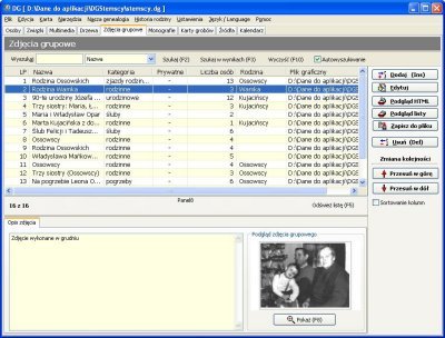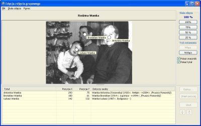 - zaawansowany edytor zdjęć grupowych pozwalający na opis osób uwiecznionych na zdjęciach rodzinnych;