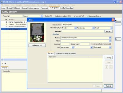 - edycja monografii rodzinnej: osób, związków oraz dla utworzonego drzewa genealogicznego;