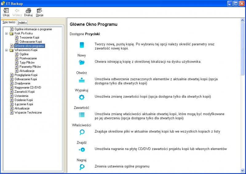 Program ET Backup to niezawodne narzędzie do tworzenia kopii zapasowych Twoich danych. Program posiada intuicyjny i łatwy w obsłudze interfejs. Kopie bezpieczeństwa wykonywane są w czasie rzeczywistym i nie wymagają Twojej uwagi. Na bieżąco możesz dokonywać operacji na zarchiwizowanych plikach bez konieczności ingerencji w całą zawartość archiwum. Stworzone archiwa możesz nagrywać na płytach CD lub DVD.