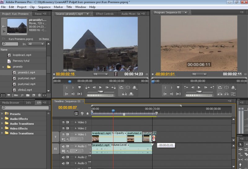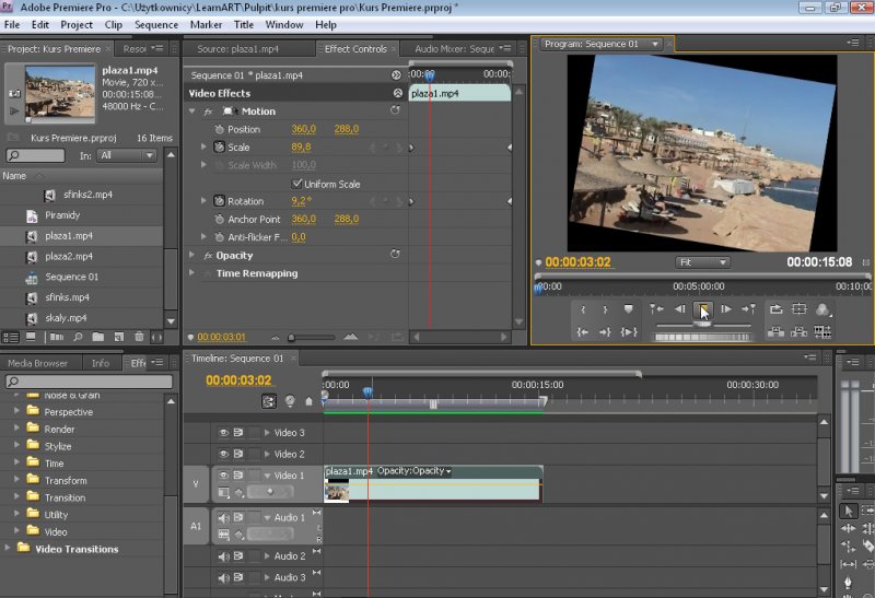 9. Układanie sekwencji – Teraz wykorzystując poznane już narzędzia utworzymy pierwszą sekwencję składającą się z kilku klipów. (05:24)