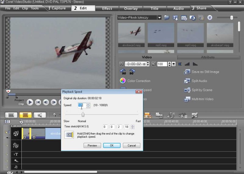 14. Zmiana prędkości klipu – Program Video Studio oferuje ciekawe możliwości związane z prędkością odtwarzania. Dowiesz się m.in. jak stworzyć klip odtwarzany do tyłu oraz jak zwiększyć lub zmniejszyć prędkość odtwarzania o dowolną wartość. (04:50)