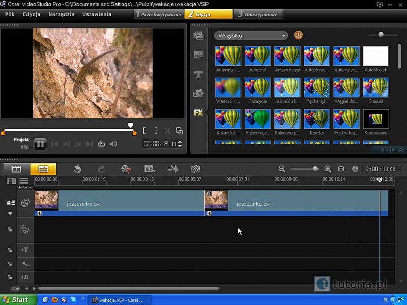 25. Efekty – Zmiana wyglądu klipów za pomocą efektów dostępnych w programie. (03:23 min)